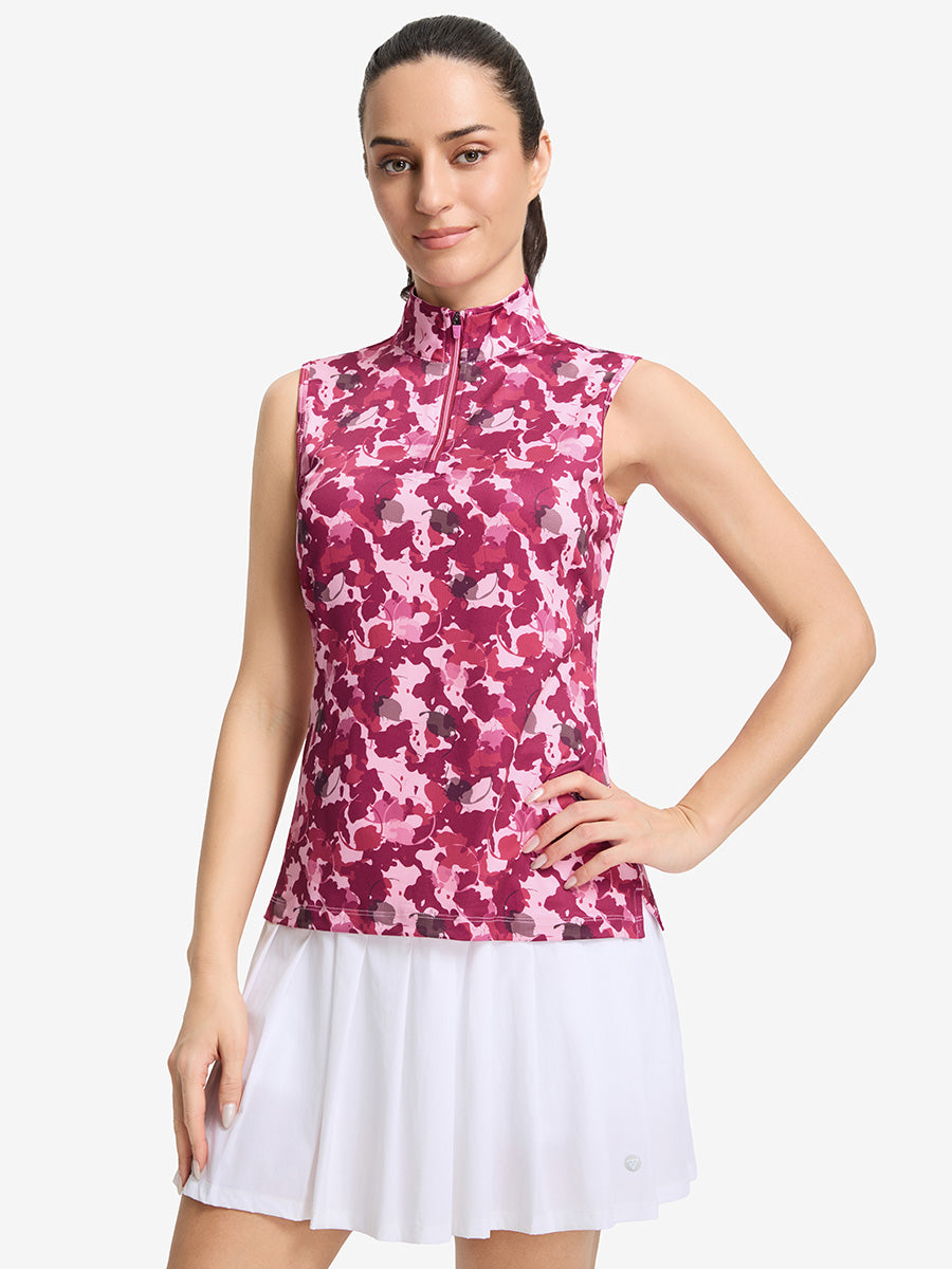 Women's Sleeveless Q-Zip Print Golf Shirts