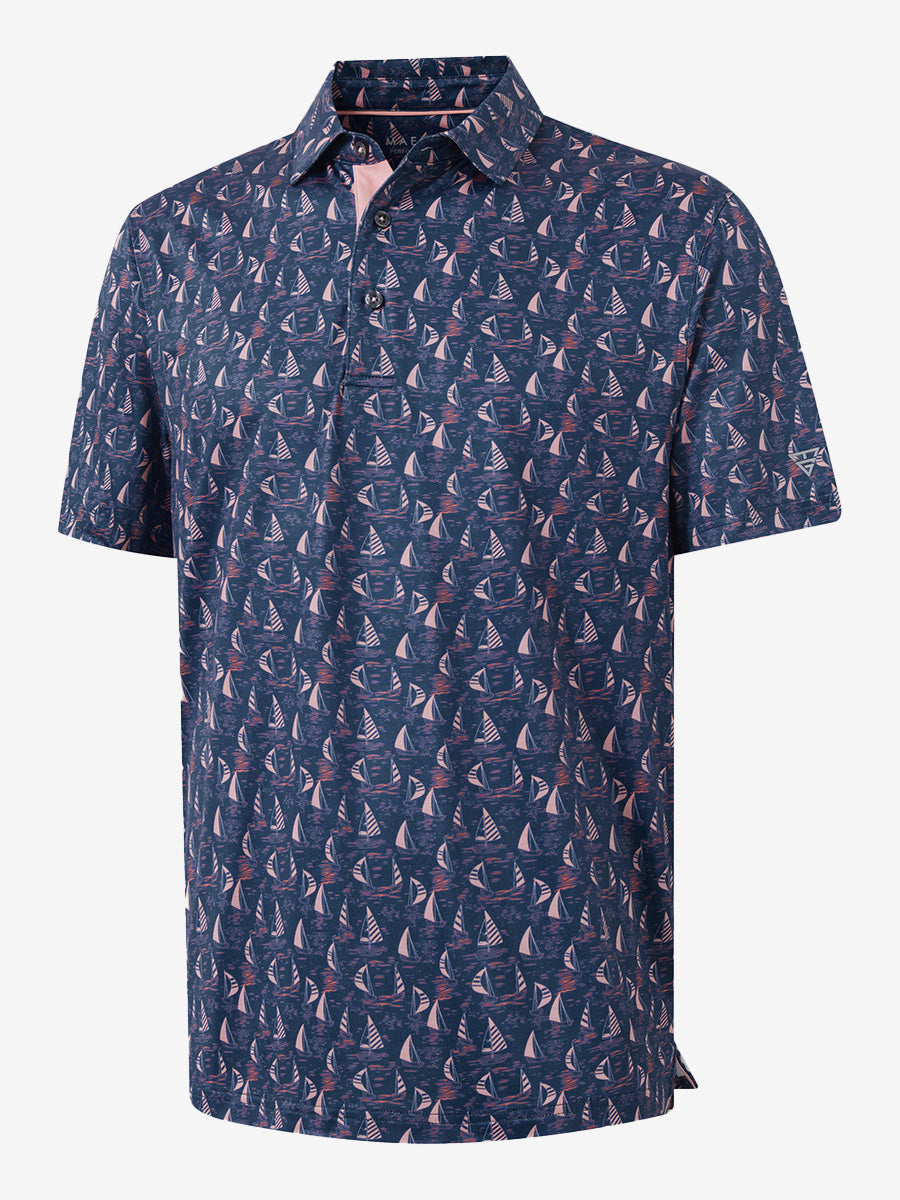 4 Way Stretch Print Collared Polo Shirts