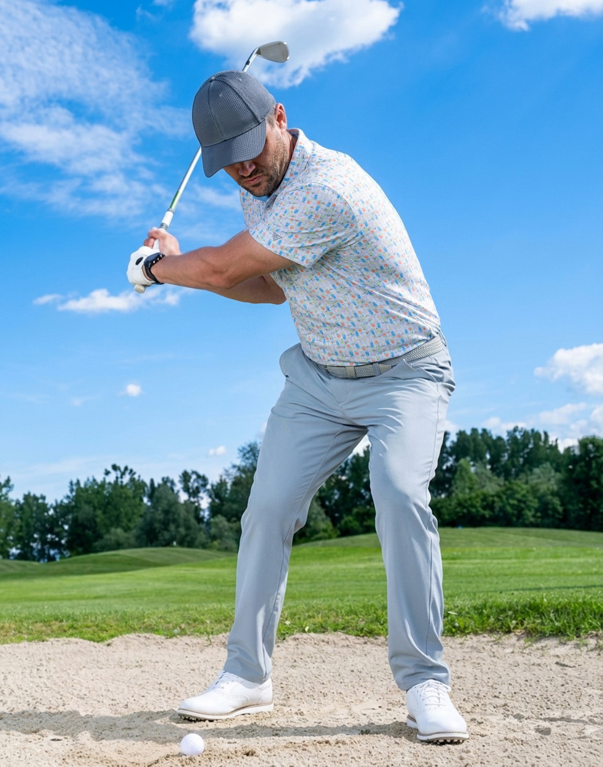 Step up your game in 4 Way Stretch Print Collared Polo Shirts! Designed with breathable, moisture-wicking, quick-dry fabric and a smooth, skin-friendly feel, they keep you cool and comfortable all day. The 4-way stretch ensures total freedom of movement, while UPF 50+ shields you from the sun—perfect for golf or everyday wear. Bold print designs add standout style, so you look sharp whether you're on the course or out and about!