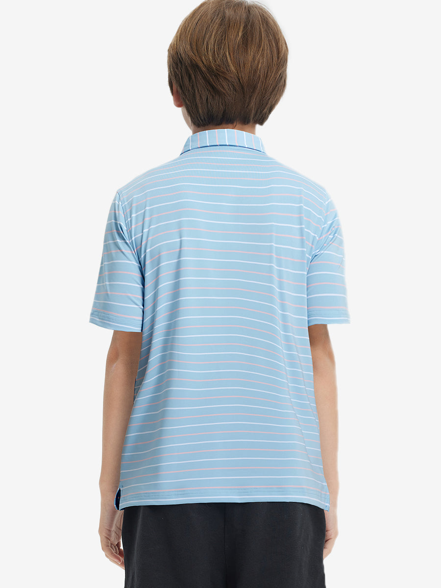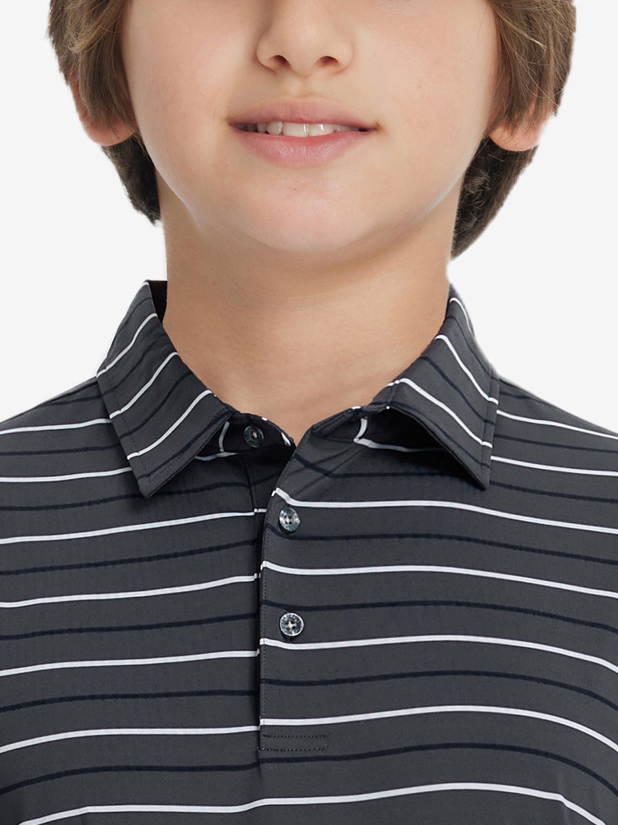 Introducing our Kids Stylish Stripe Polo Shirts! Made from high-end polyester spandex, these soft, skin-friendly, and lightweight shirts keep your little ones cool and dry in hot weather. With 4-way stretch fabric and premium dyeing, this vibrant youth golf shirt remains durable wash after wash, perfect for active kids who love to play.